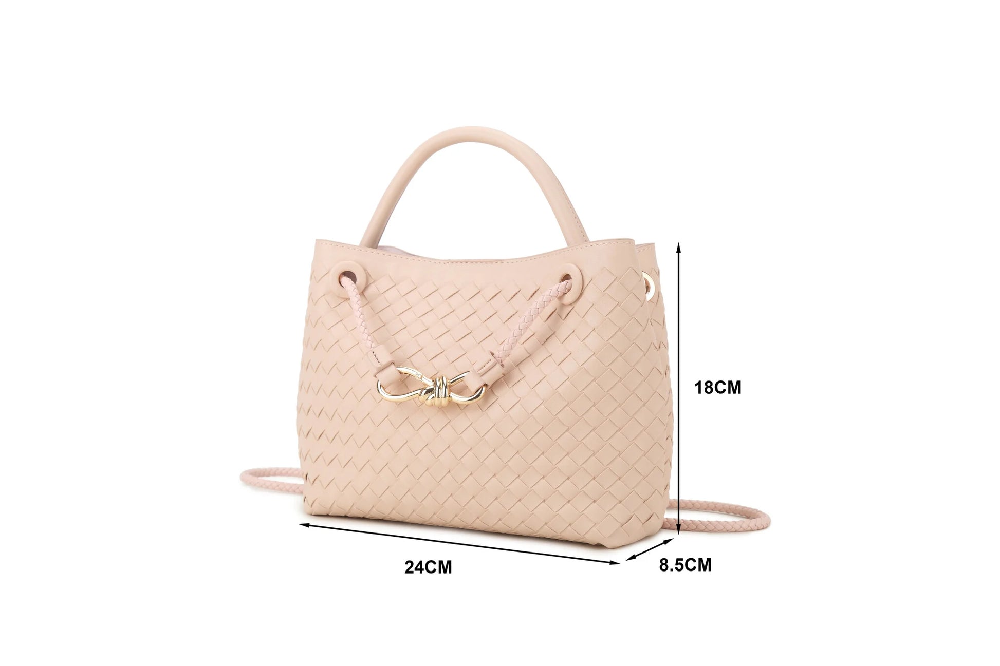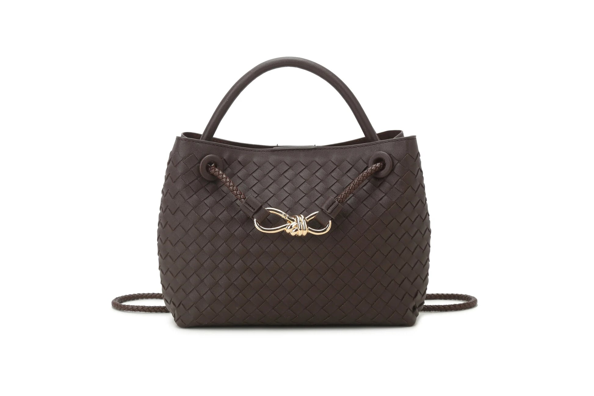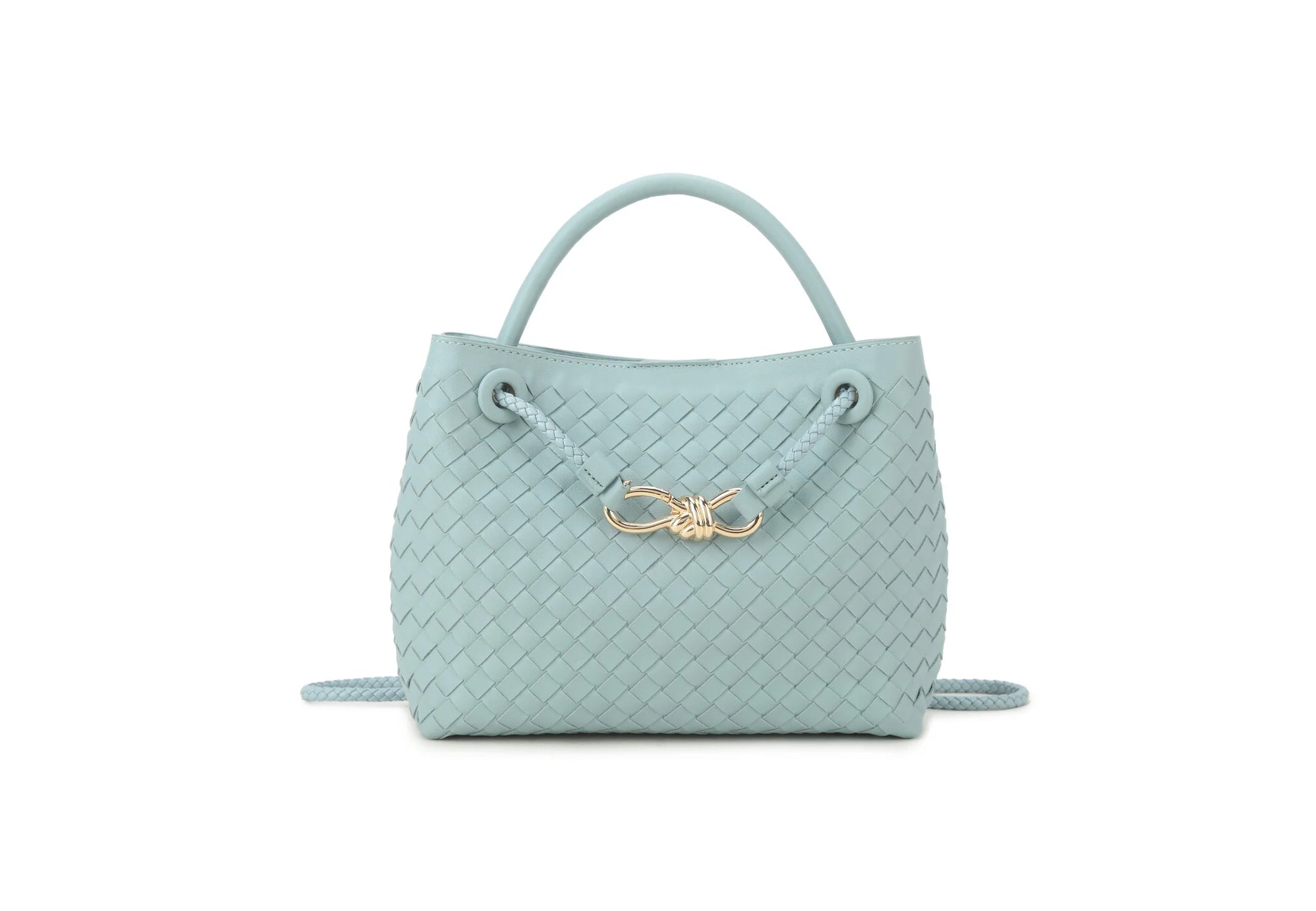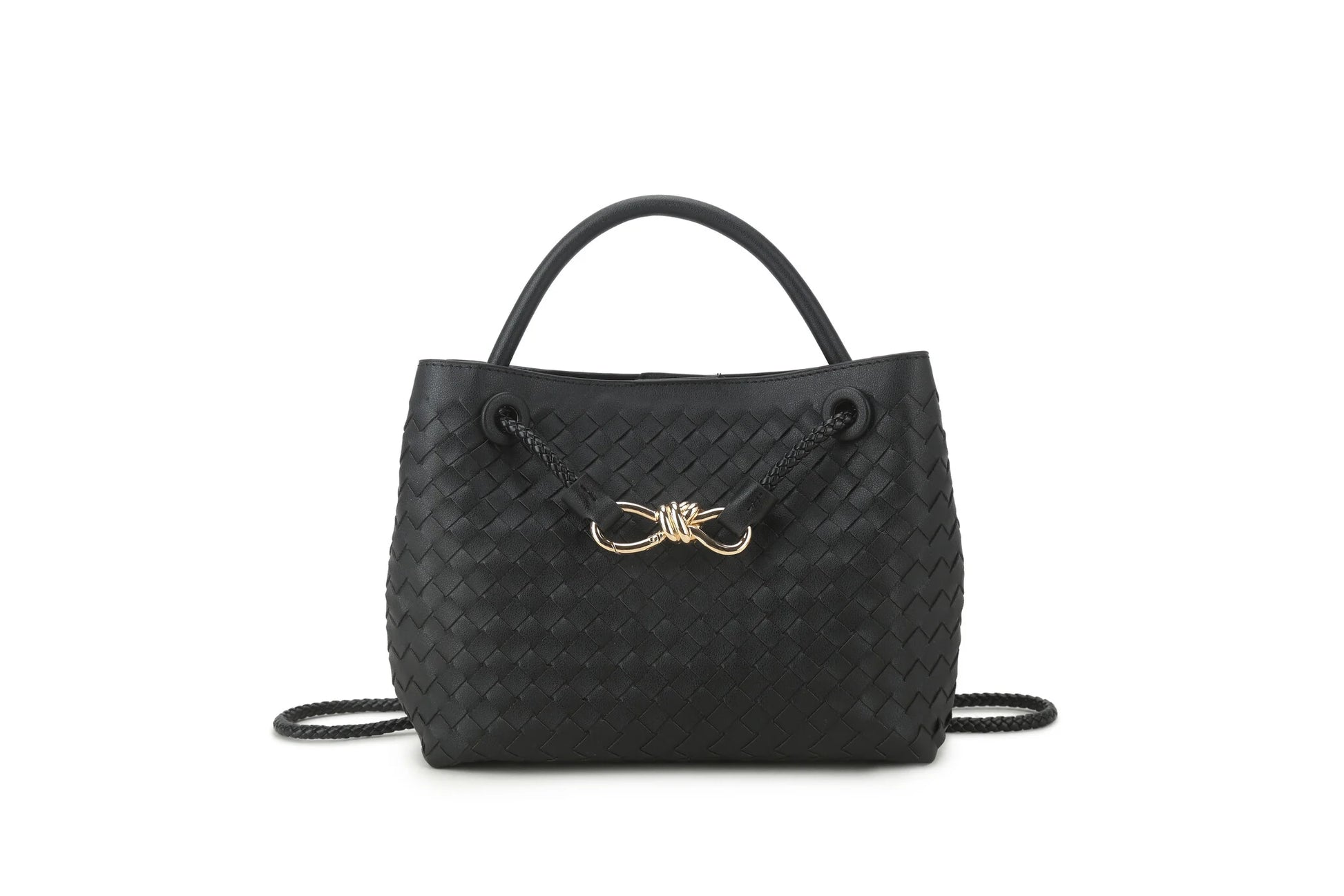 Elegante gevlochten crossbodytas met gouden detail en verstelbare koordsluiting. Compact maar ruim genoeg voor dagelijkse essentials. Stijlvol, lichtgewicht en perfect voor elke outfit. Verkrijgbaar in meerdere kleuren.