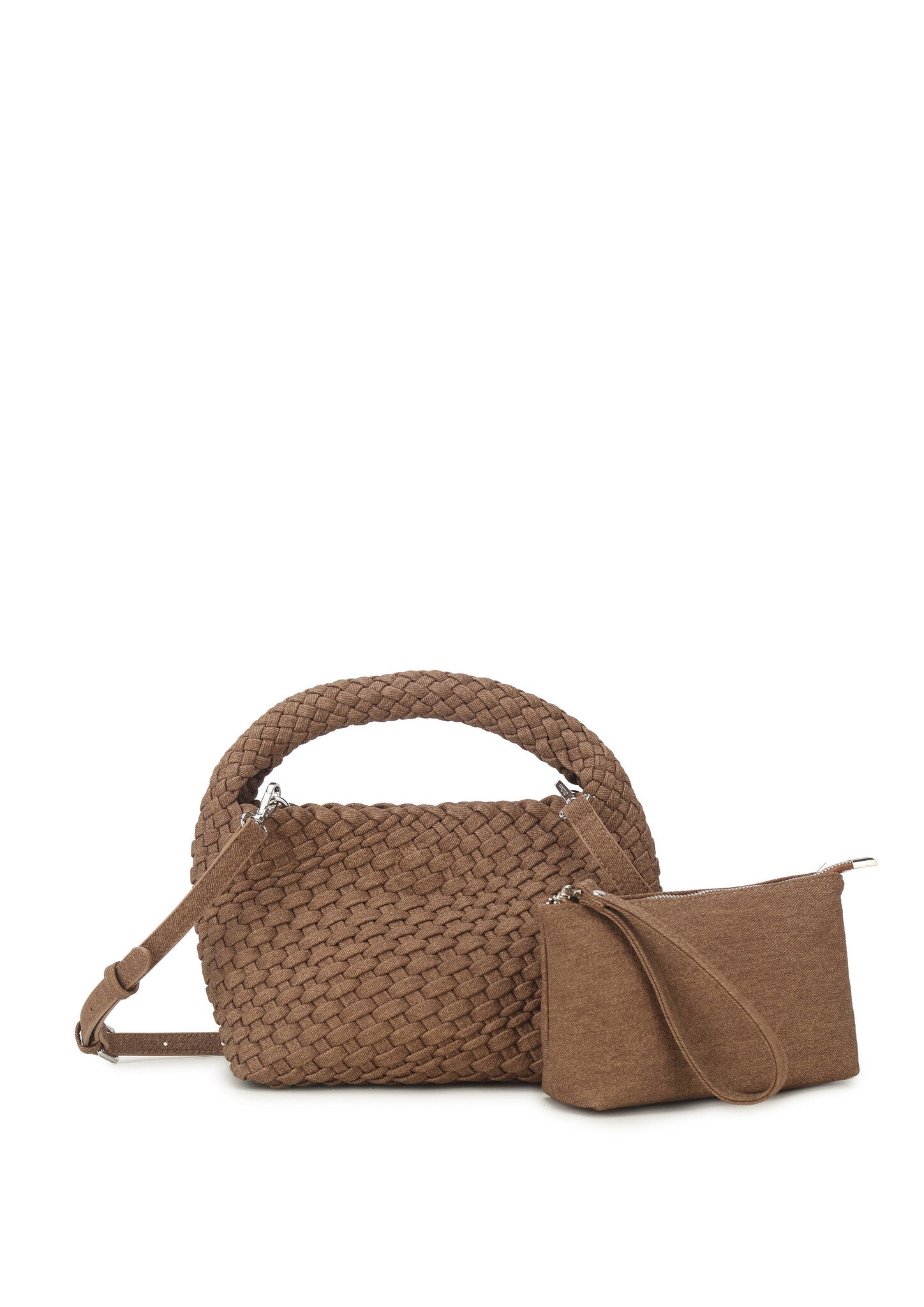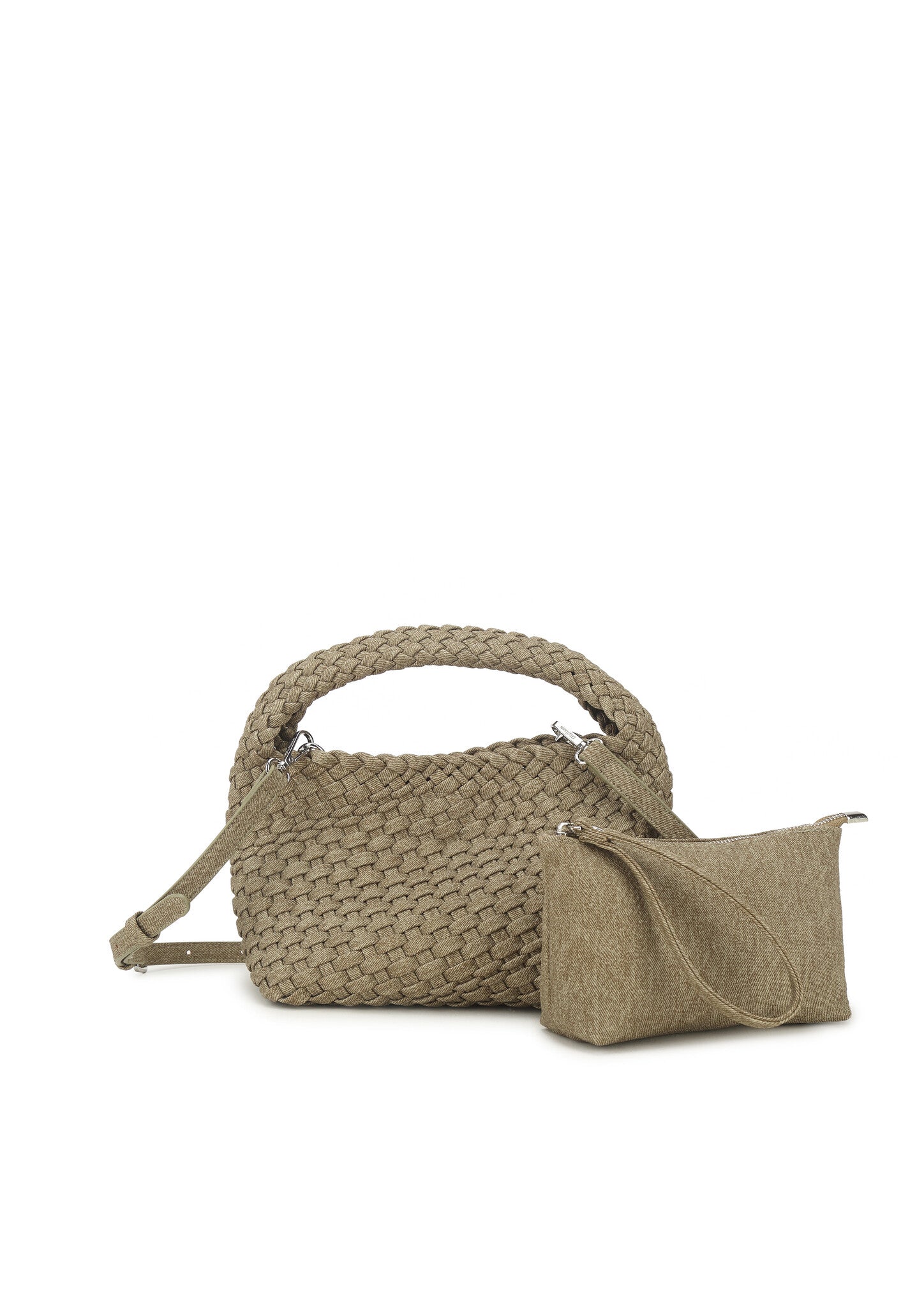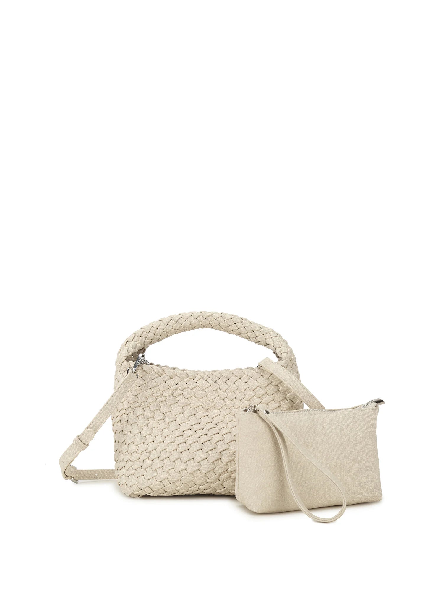 Stijlvolle gevlochten handtas met een uniek en modern design. Voorzien van een verstelbare schouderband en een uitneembaar etui voor extra opbergruimte. Ideaal voor dagelijks gebruik. Afmeting: 22 x 12 x 18 cm.