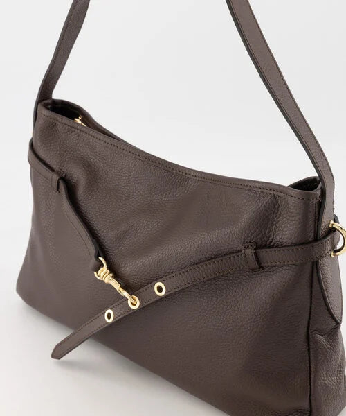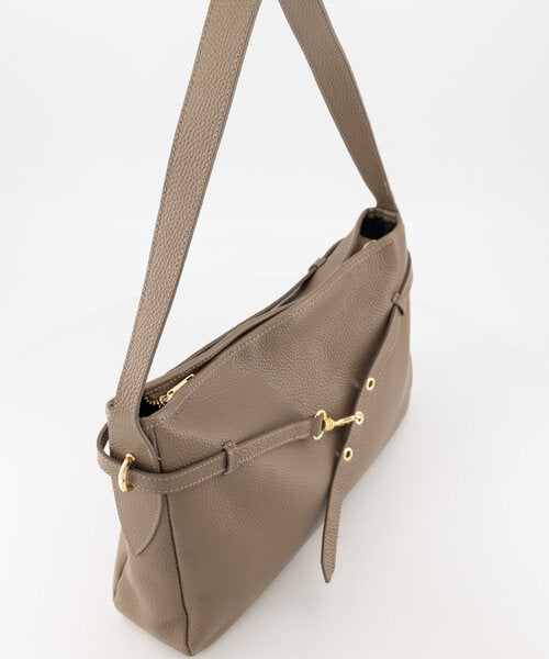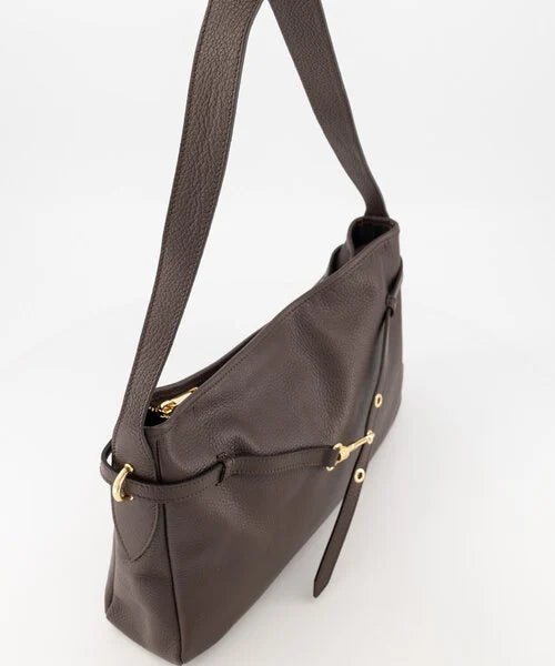 De Ginny is een compacte leren schoudertas met Classic Grain-structuur, afgewerkt met goudkleurige hardware. Dankzij het afneembare en verstelbare hengsel draag je de tas zowel crossbody als over de schouder.