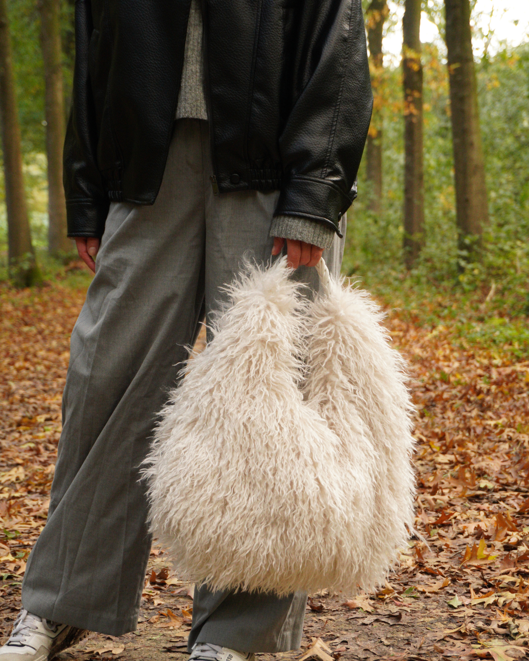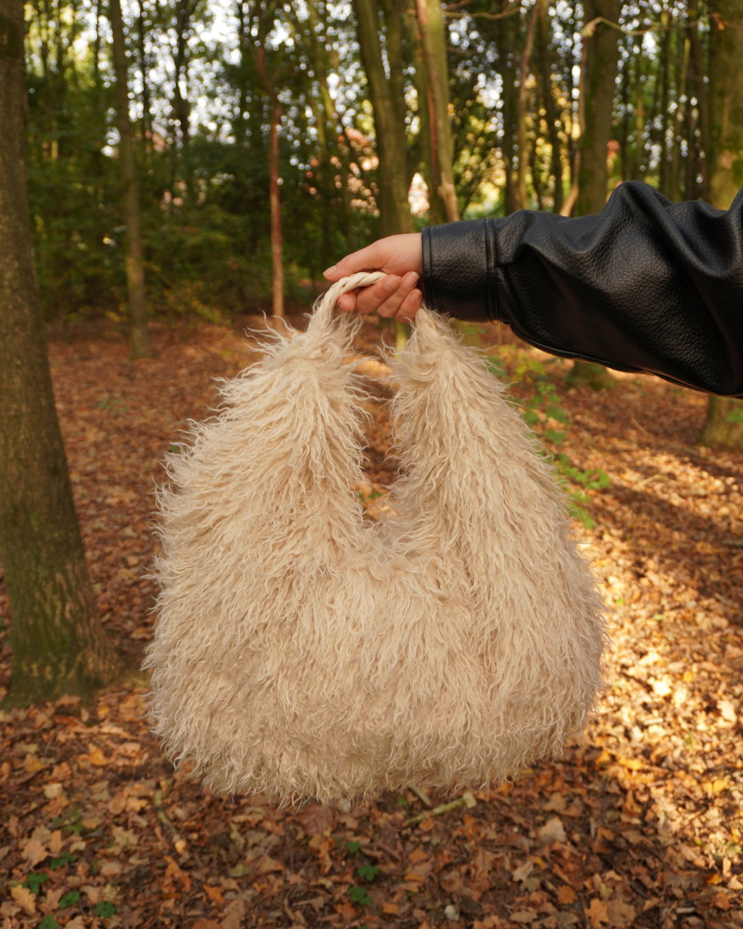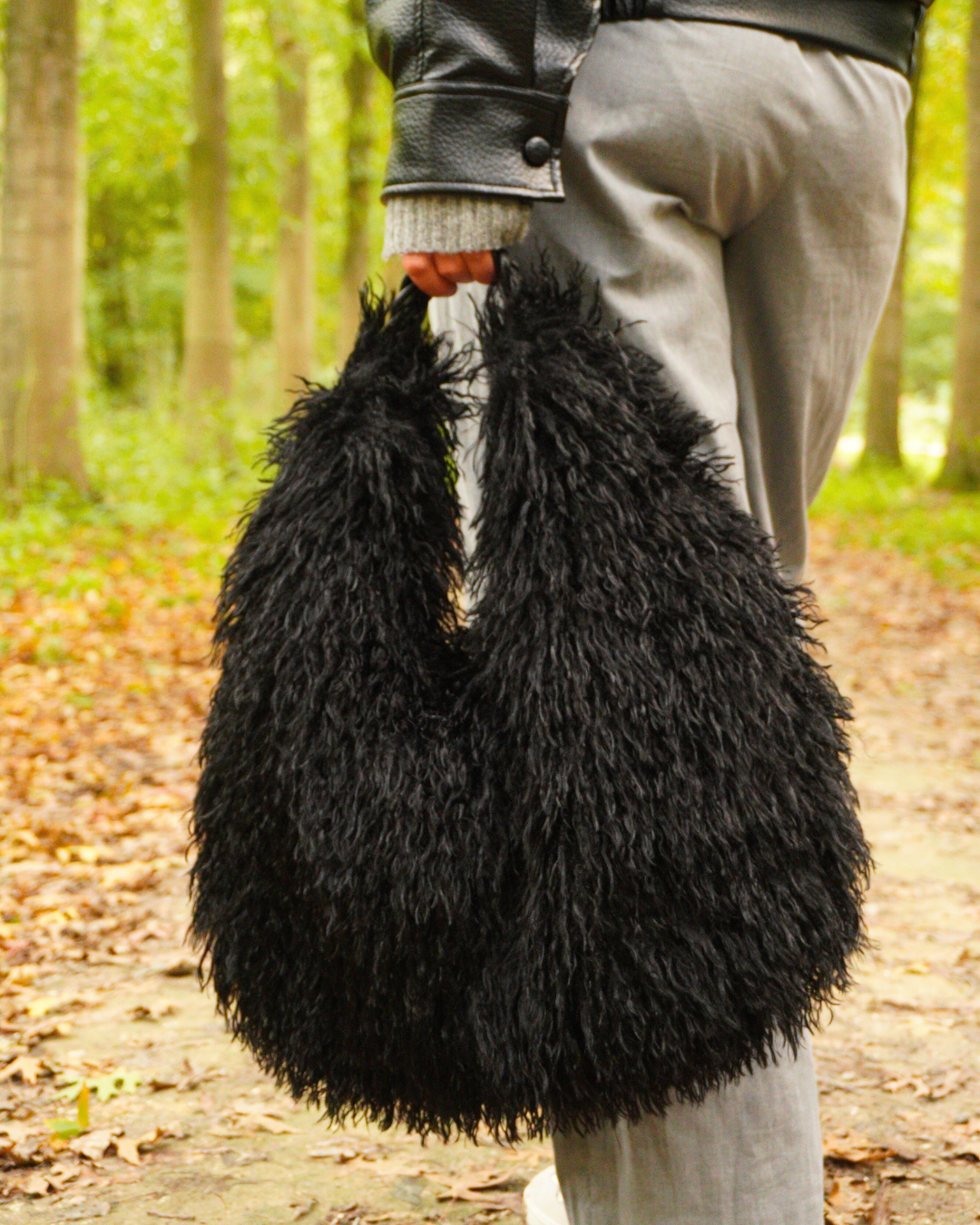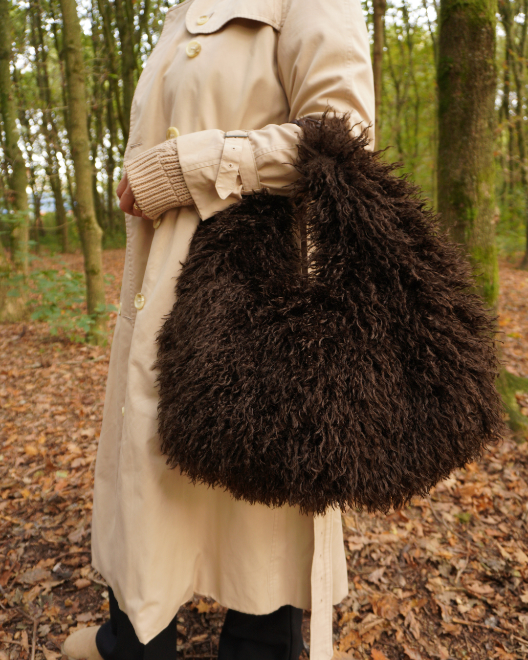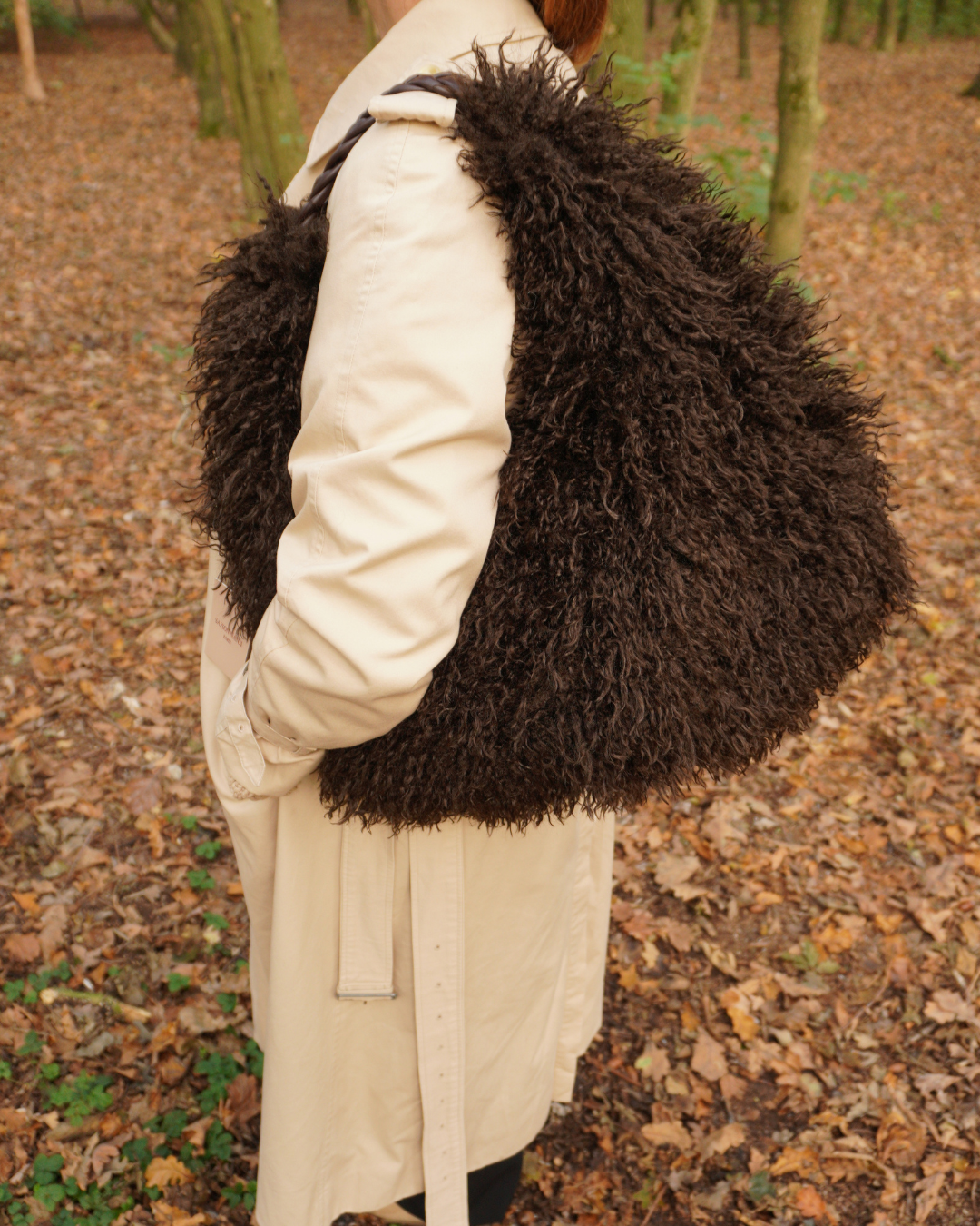 De Handtas Aria straalt pure elegantie uit met door het donkerbruine imitatiebont en luxueuze details.