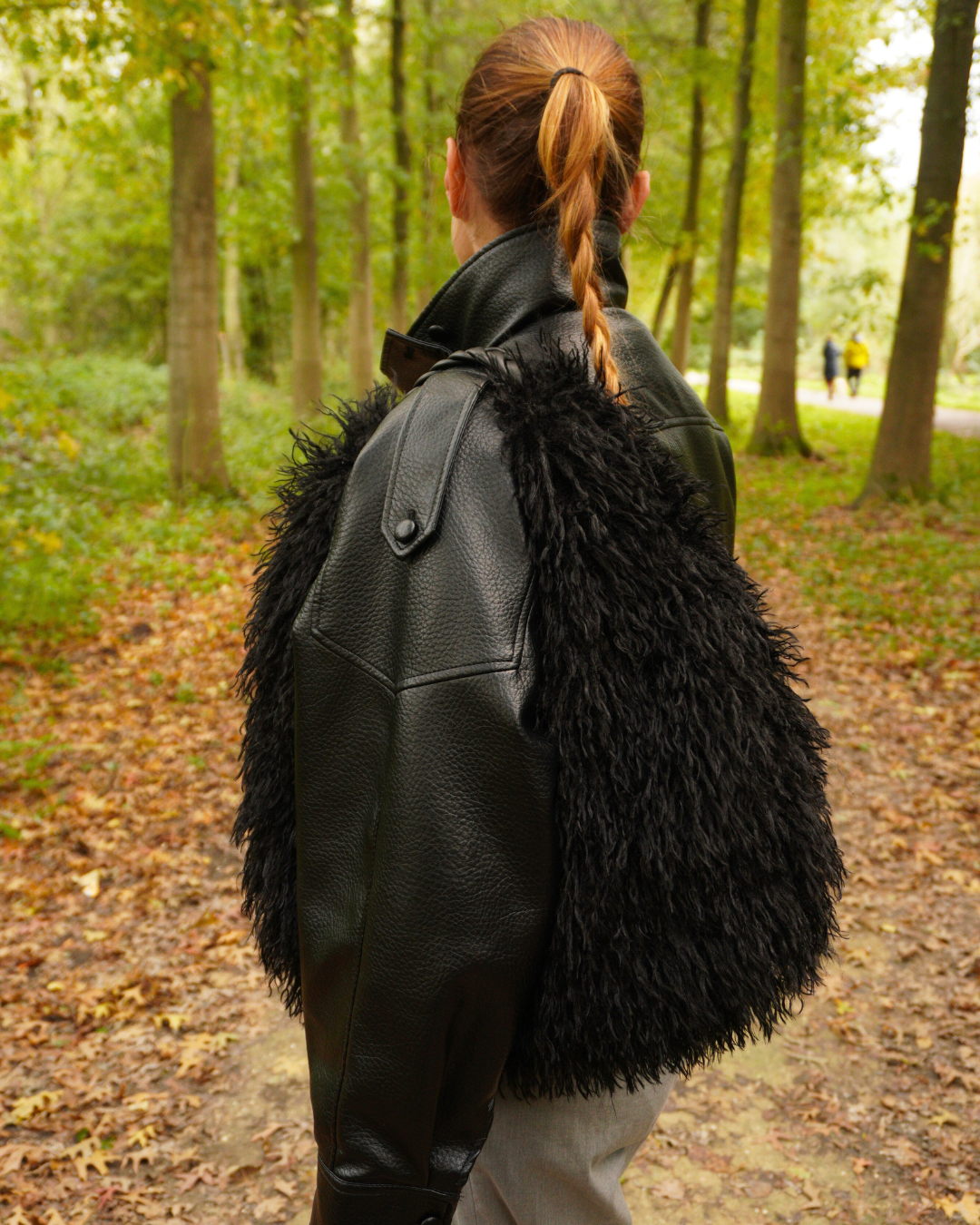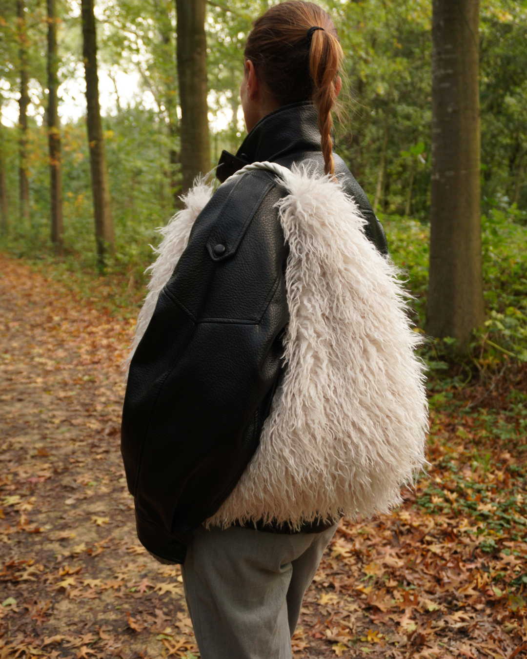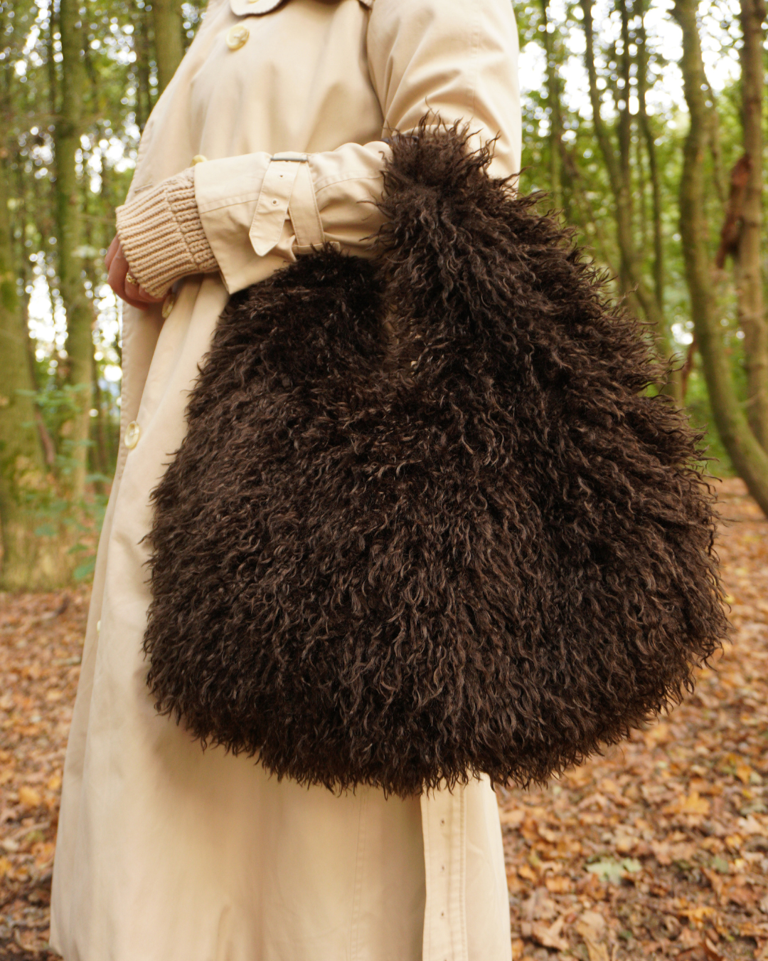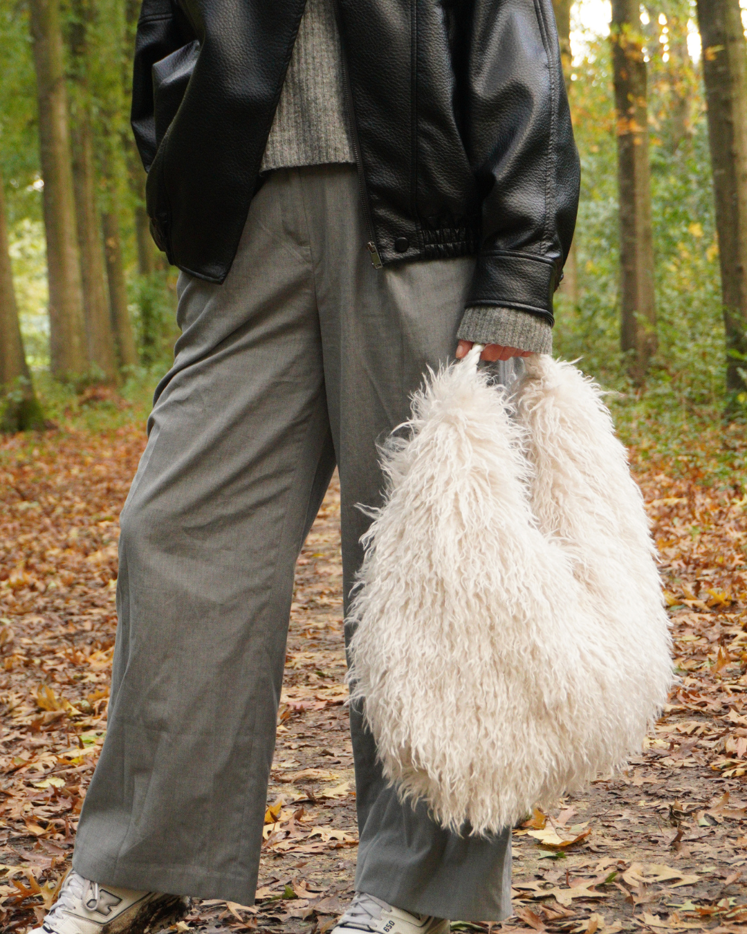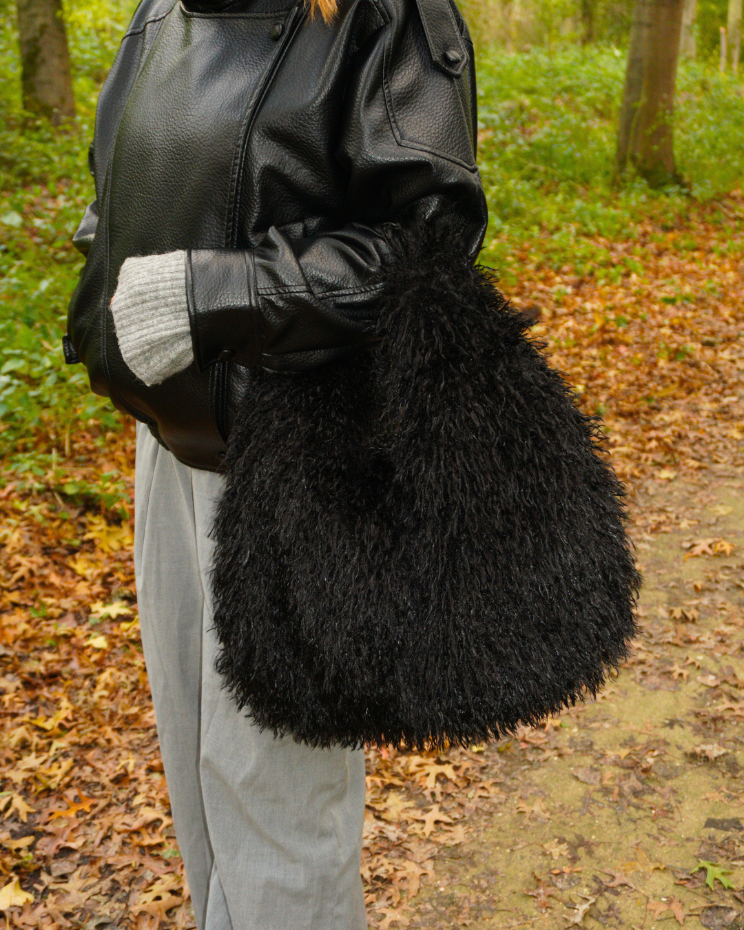 De Handtas Aria straalt pure elegantie uit met door het donkerbruine imitatiebont en luxueuze details.