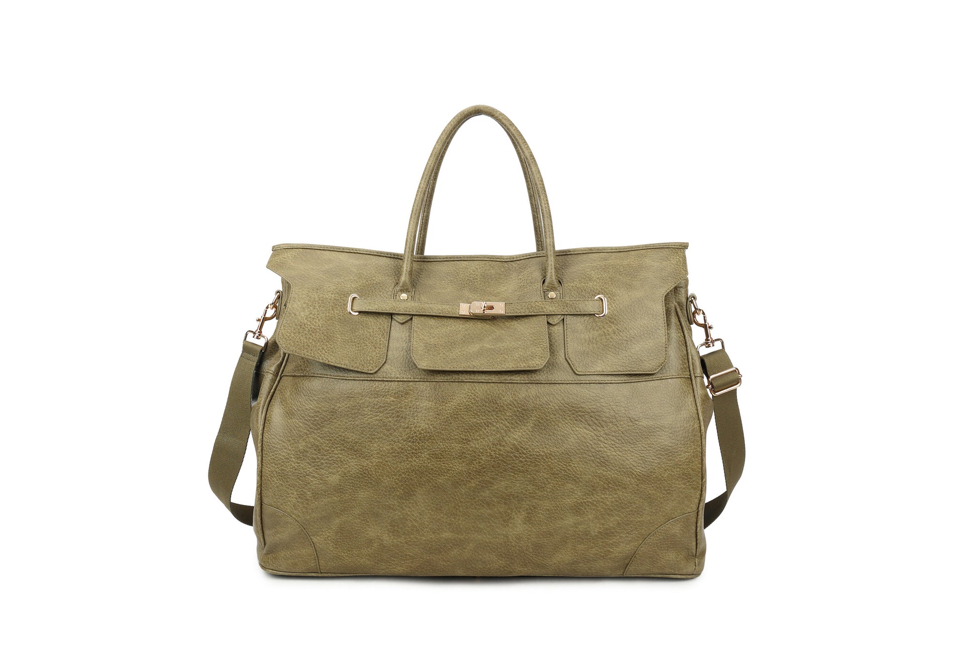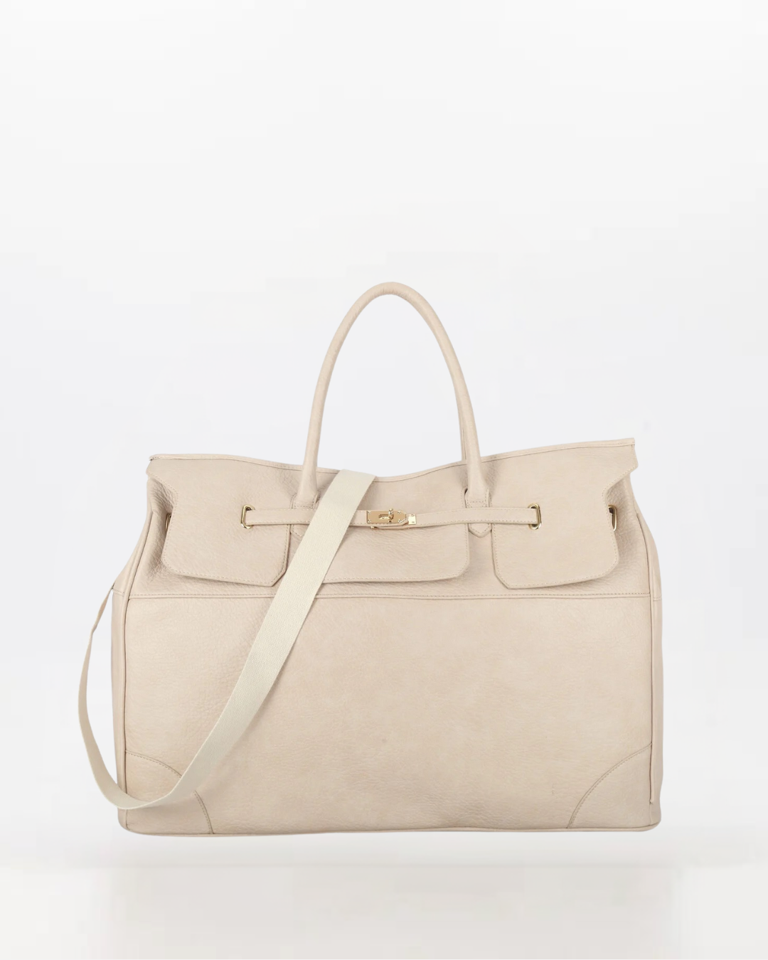De Mila is een stijlvolle en ruime tas van kunstleer, afgewerkt met goudkleurige details. Het ontwerp combineert stevige handgrepen met een verstelbare schouderband, waardoor de tas zowel chic als praktisch is voor werk, reizen of dagelijks gebruik. Binnenin bevinden zich meerdere handige vakken.